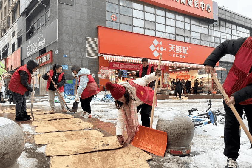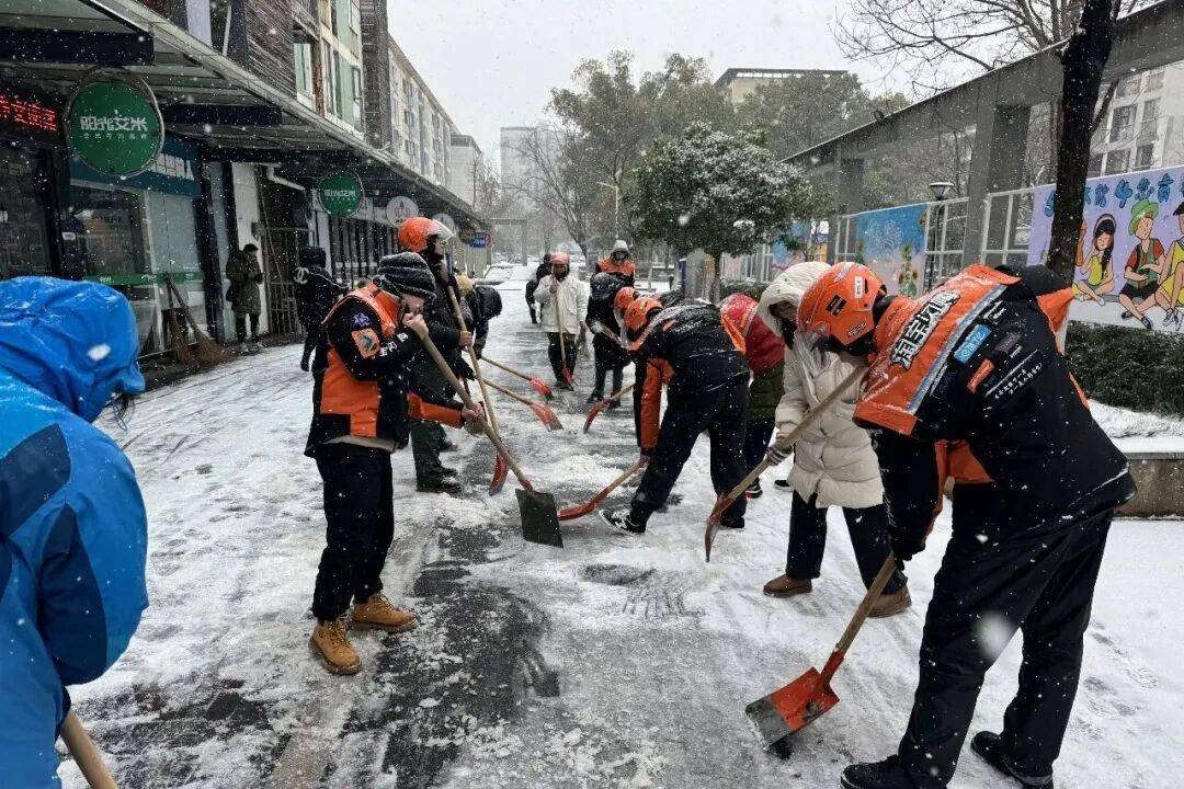 武汉经开区党工委社会工作部迅速响应、统筹发动,各街道、社区工作者、新就业群体志愿者火速集结。7个街道83个村社区积极响应部署,党员率先带头提前组建应急志愿服务队伍,对辖区主次干道、学校周边、公交站点等重点区域开展积雪清除工作,高效保障道路通行。村社区层面同步发力,一方面组织人员清理背街小巷及单元门口积雪,铺设防滑垫;另一方面开展“敲门行动”,细致了解高龄、独居老人和困难家庭需求,通过开放取暖点、提供热水等物资,传递雪天里的社区温情。志愿者群体主动作为,网约车司机自发组建爱心车队,为老人、就医人员等特殊群体打通“绿色通道”;快递外卖小哥早早来到驿站,化身环卫工人扫开通往“家”的一条条雪路,温暖同行的每一位伙伴。